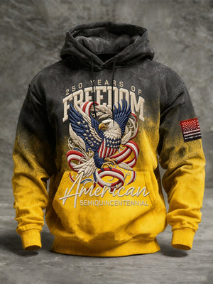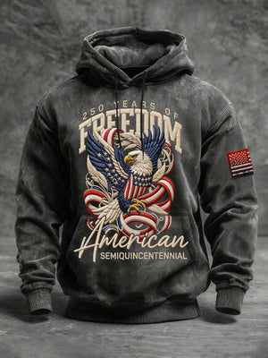 Men's Vintage American Flag Print Hooded Sweatshirt