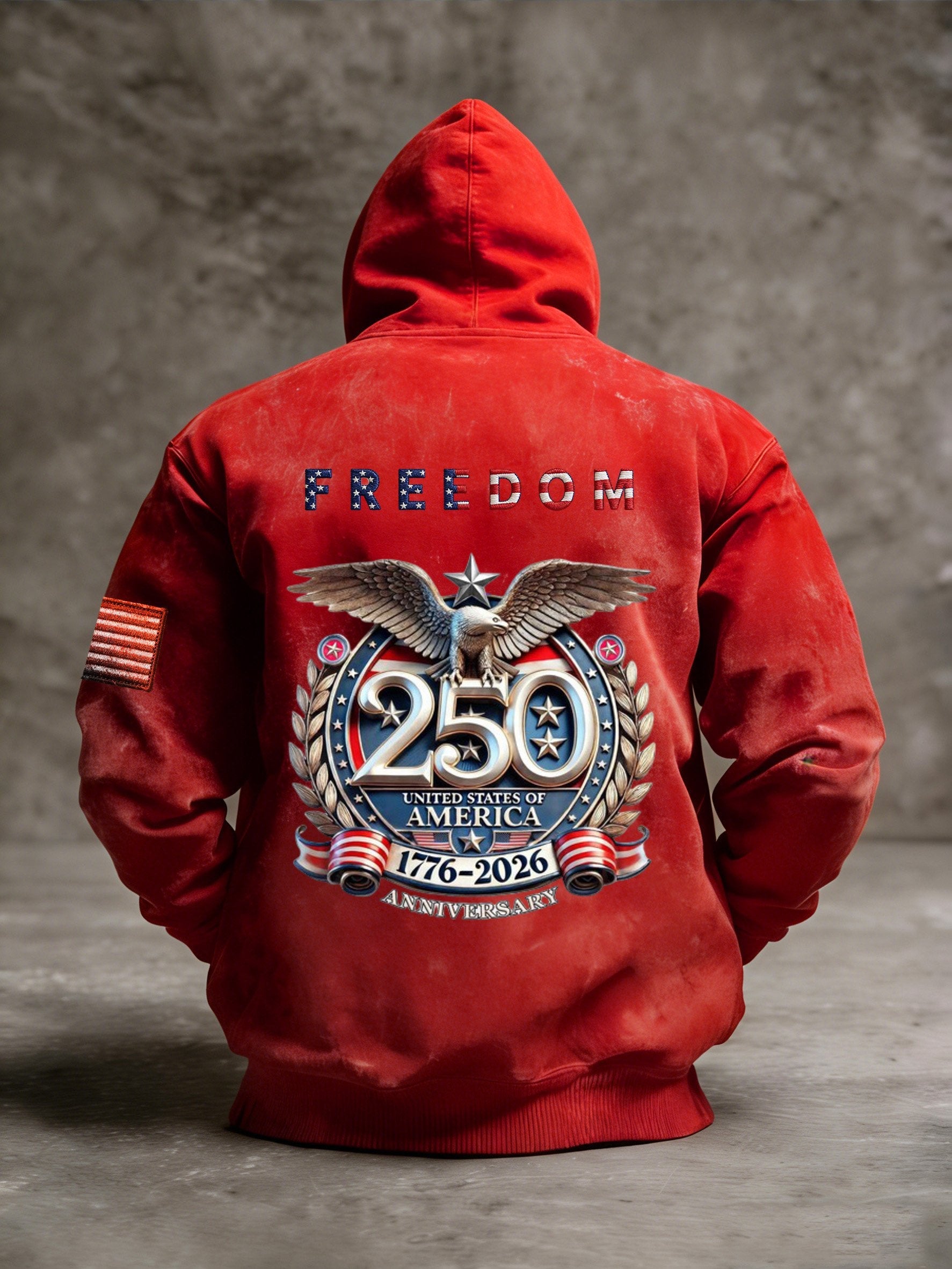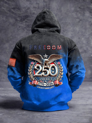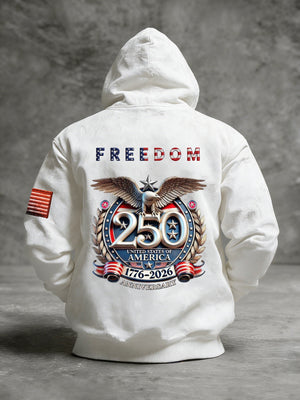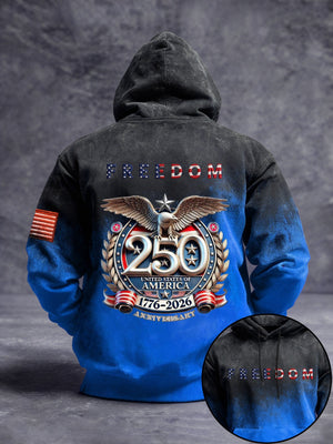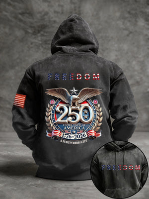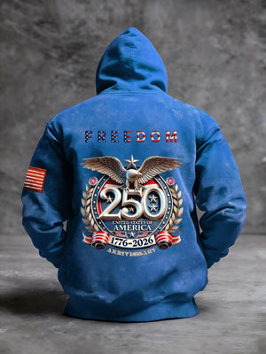 Men's Vintage American Flag Print Hooded Sweatshirt